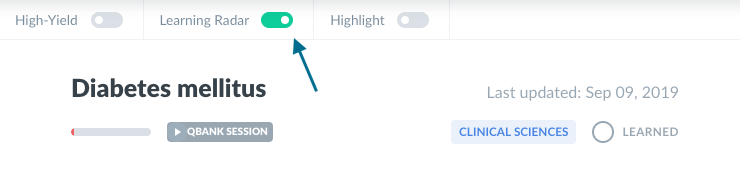 Pinpoint your studying. Enable the Learning Radar to quickly catch and correct the specific key knowledge points you missed during your Qbank sessions....